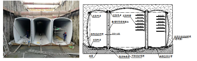 (1)、分片拼裝式波紋鋼結(jié)構(gòu),每片波紋鋼板面積只有2~3平方米,單節(jié)長度沿縱向長度只有1~1.5米,并且要求錯縫拼裝,接縫多。