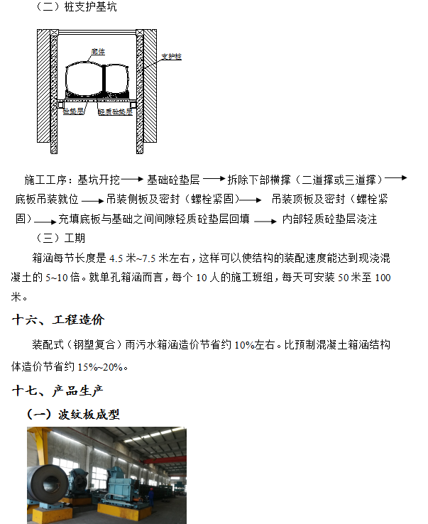 ①裝配式結(jié)構(gòu),結(jié)構(gòu)體工期是現(xiàn)澆混凝土結(jié)構(gòu)的三分之一至五分之一,是裝配式混凝土工期的一半,是普通的涵洞型鋼波紋管結(jié)構(gòu)管廊的一半以上;