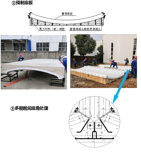 (1)吊裝預(yù)制底板至設(shè)計位置;
